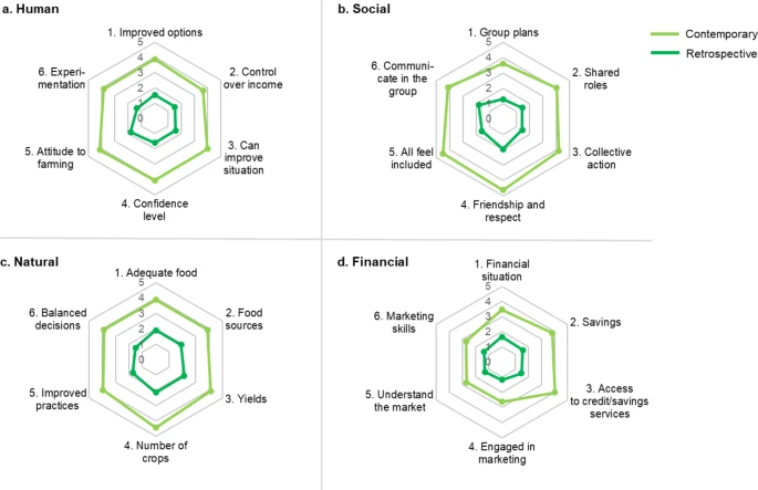 MEL framework for the FFS, and to explore the effects of the FFS. The framework differentiated between four capital domains. Data were collected from 33 FFS groups at 2–4 years after the start of the FFS, using spider diagramming, focus group discussions, and direct observation. These tools demonstrated their feasibility and acceptability for use by practitioners at the district level and provided cross-verification of results, whereas limitations included the risk of biased