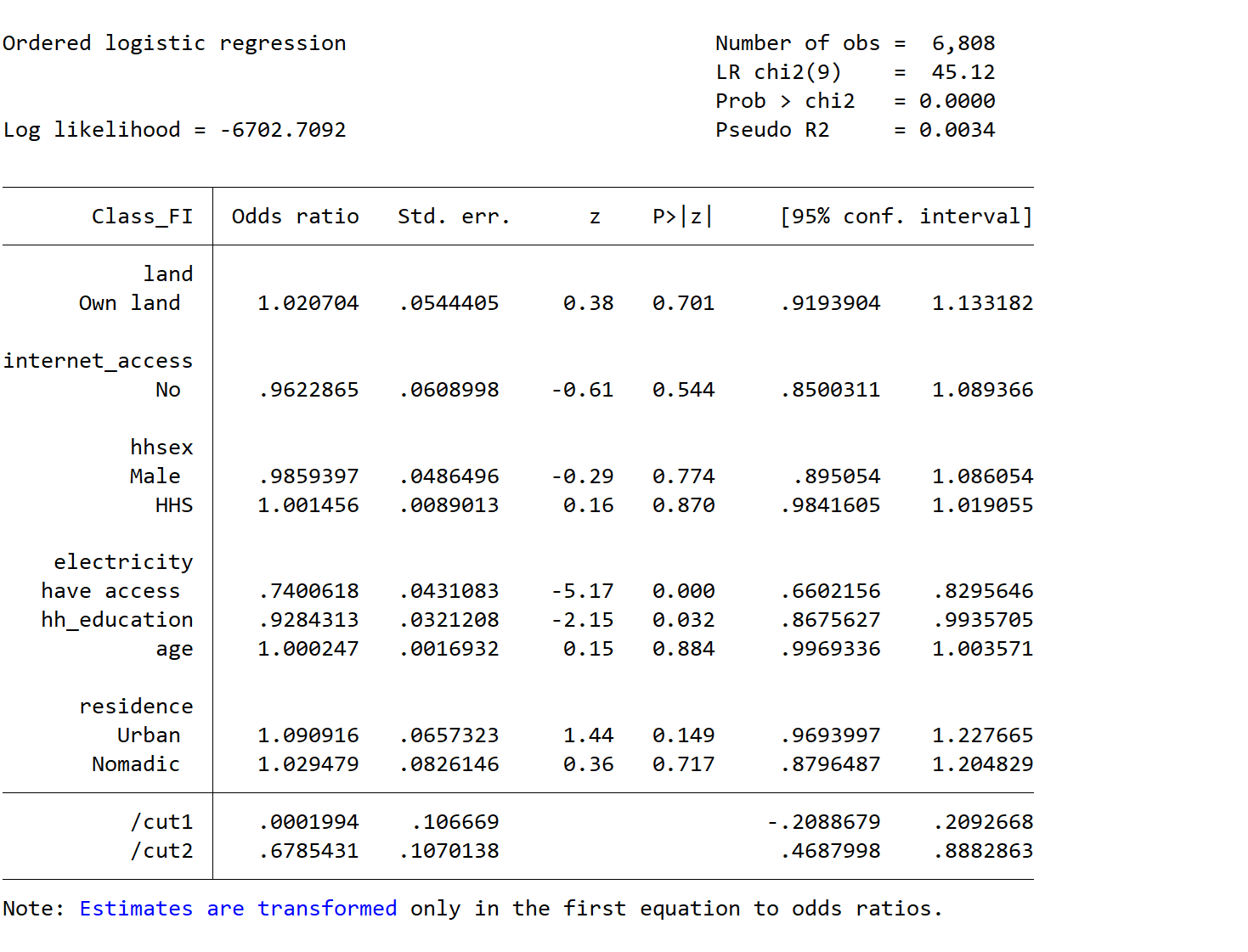 Determinants of Household Food Insecurity in Somalia (Ordered Logistic Regression).